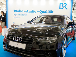 自動車とデジタルラジオの相性の良さをアピールすることを狙って、High Endのホール展示ではアウディのS7でDAB+の再生デモンストレーションが行われた。実際に聴いてみると、特にサラウンド音源の臨場感と音の鮮度の高さに既存のFM放送との大きな違いを聴き取ることができ、フラウンホーファーが開発したコーデックと再生回路の長所もうかがうことができた。
