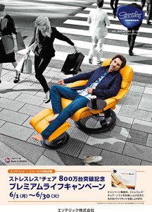 エソテリックは、エコーネス社のストレスレスチェアの「800万台突破記念プレミアムライフキャンペーン」を6月1日から6月30日まで実施する。