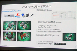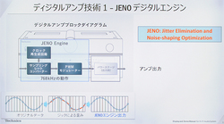 新生Technicsのキーとなっているのが、フルデジタルアンプ「JENO デジタルエンジン」です。「従来のデジタルアンプの音質を改善しながら、LAPCなどアナログアンプではできなかったことまで可能にしてくれます」