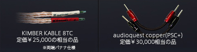 Audioquest「Copper(PSC+)」かKIMBER KABLE「8TC」いずれかのバイワイヤージャンパーケーブル1点