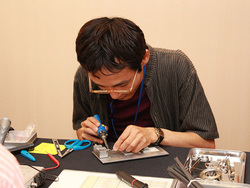 また、来場者からのリクエストをその場で受け付け、“オーディオみじんこ”こと同社の荒川敬氏が、MMCXケーブルをブース内で製造するという光景も見られた。