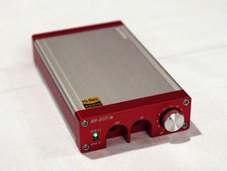 ニューオプトは、ポータブルヘッドホンアンプ「KH-01P」と「KH-01P/m」や、KH-01Pとの接続に最適化したという接続ケーブルを出展した。