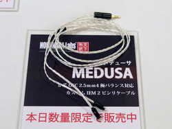 展示されていたのは、同ブランド初となるカスタムIEM2ピンケーブル「ワルキューレ」と「メデューサ」。7月24日より発売予定だが、各5個ずつ限定で先行販売が行われた。