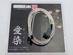 すでに発送を開始しているMMCX対応リケーブル「愛染」も展示。愛染は、同ブランドのプレミアムモデルのMMCX対応リケーブル「雷切(関連ニュース)」の2.5mmバランス端子を角型4ピン(アイリス)端子に変更したモデル。