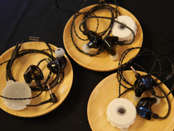 その他、低域の量感を評価することをコンセプトに作ったイヤホンの試作機3モデルを参考展示。モデル名は「004」「005」「006」とされており、数字が増えるほど低域の量感が増えていく。製品化については全く未定とのこと。