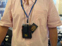 バンナイズは、Astell&Kernのハイレゾポータブルプレーヤー「AK380」向けのキャリングケースを展示した。キャリングケースの背面でストッパーの固定位置が調整できるため、AK380に専用ケースを着けた状態でも、そのままキャリングケースに入れることができる。担当者によると、ブースに訪れる人の多くが本ケースに注目しているとのことだった。