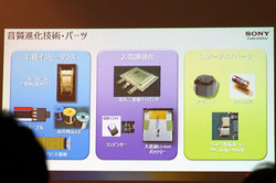 NW-ZX2の高音質化に寄与する要素としては、そのほかにも「低インピーダンス化」「電源強化」「メルフ抵抗などのオーディオパーツの採用」なども挙げられた。
