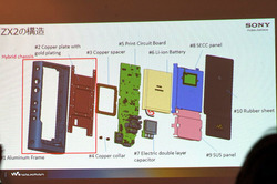 佐藤朝明氏は「NW-ZX2」開発裏話を披露。当初商品企画側から来た要請は「バッテリーの持ち時間を長くする」「microSDに対応する」ということだけだったというが、「まずはZX1を改造して、それからどういう方向で音を良くするか検討した」とのこと。ZX1の筐体にZX2の中身を搭載した試作機を製作したというエピソードも語られた。