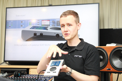 基本デザインはBabyfaceを踏襲しているが、新たに4つのボタンを追加。旧モデルは3ボタンによる構成としていたが、、逆に操作が複雑になってしまっていた点を反省し、新モデルではボタンを増やして操作性を向上させた。一方で直感的な操作性は損なわない様に意識したとのこと。また、ボリュームを表示するLEDも従来の1系統から2系統に増えた。マティアス氏は「液晶ディスプレイを追加しないのかと言われることもありますが、コストだけでなく視認性の面でもLEDが優れていると判断しました。この会場の1番後ろの方にも、私の手元のBabyface ProのLEDが判別できますよね? 液晶だとこうはいきません」と話していた。