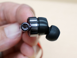 ハウジング部はヘッドホンの2機種と同様にオーディオのボリュームからデザインされ、リング形状のハウジングカバーを採用。ブランドロゴから表現したレッドトライアングルマークとレッドケーブルも採用している。そのほかスタイリッシュスタビライザーの採用によって装着時の安定感向上なども図っている。