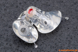 アクリル素材を使用したハードタイプのイヤーピース。個々人で異なる耳型に合わせてイヤーチップを制作することで装着感と遮音性が高まり、これによって音の定位感が安定するなど音質面の向上も図れるとしている。