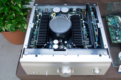 11シリーズは旗艦モデル「SX1」に次ぐラインナップで、発売は10月中旬。PMA-SX11(関連ニュース)は、旗艦機「PMA-SX1」からAdvanced UHC-MOSによるシングルプッシュプル回路を継承。PMA-SX1がBTL構成で出力50W+50W(8Ω)という仕様だったのに対し、PMA-SX11はアンバランス構成を採用して出力を120W+120W(8Ω)とした。MM/MC対応のCR型フォノイコライザーもPMA-SX1から継承している。