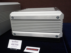 電源アクセサリーのISOTEKブランドでも今年の秋冬に発売を予定している「EV03 TITAN」(予価60万円・税別)や「EV03 SOLUS」(予価15万円・税別)、「EV03 MINIMIRA」(予価5万円・税別)などの新製品を展示。「おそらく年明けくらいの発売になるのではないか」という「EV03 Mosaic Genesis」(予価120万円・税別)も展示されている。