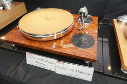 また、同社が取り扱う独アナログプレーヤーブランド「Acoustic Solid」の製品群も紹介。参考出品として紹介されていたのが「Solid 113 Bubinga」で、アーム付属のセットモデルが424,000円、アームレスのモデルが360,000円となる見込み。このほか、デモシステムには「Solid Royal」や「Solid Machine」などの高級機も用意され、実際に音出しを行っていた。