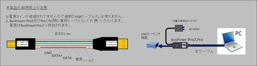 同製品は、PCの発するノイズ成分を遮断するために、USB2.0の規格から電源ラインの結線をなくしたUSBケーブル。BusPower-Pro2およびBusPower-Proとの組み合わせにより、USBオーディオ機器の持つ潜在的な性能や音質を最大限に引き出すとしており、電源はBusPower-Proより供給される。