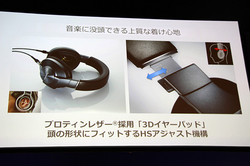 装着感にも配慮。RP-HD10にも採用されたHS(Horizontal Slide)スライド機構を本機も採用した。またイヤーパッドは人間工学にもとづいた形状としたほか、低反発クッションやプロテインレザーを使用することで、耳を優しく包み込むつくりとなっている。