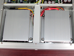 電源部は、TDKラムダ製の50Wスイッチング電源を2基搭載。メインユニットとドライブユニットそれぞれに専用ユニットを配置する構造で、システム部とHDD部の電源をユニット部から独立させることで、ノイズの混入を抑制した。