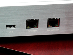 LANインターフェイスは、「for Audio」と「for Network」と記述された端子を1系統ずつ装備しており、「for Audio」はネットワークオーディオプレーヤーへ、「for Network」はホームネットワークに接続することで、音楽信号をプレーヤーへ高品位に直接伝送できるようにしている。転送規格は1000BASE-T/100BASE-TX/10BASE-Tで、コネクターはRJ-45。基板と強固に接続する14点固定のDIPタイプ・LANコネクターを採用している。
