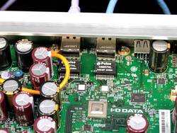 また、2系統のLAN端子は、信号端子が上に来るように配置することで、LANケーブルの端子と安定して接触するように配慮。ポートには接続状態を確認できるLEDランプを装備しているが、これらのランプ動作は設定から無効にすることが可能で、ランプ点灯・点滅によるノイズを抑えられる。LAN端子部の内部にはPulseトランスを配置することで、信号精度の向上を図っている。