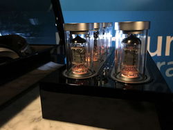 ネクストマイルストーンは、大理石で作られたベース部が外観上の特徴。さらにスイッチを入れると各種パーツが動いて出てくることも特徴で、ボタンを押すと前面のボタンがせり出し、真空管が上に現れる。さらにヘッドホンを覆うカバーが開かれ、ヘッドホンが登場する。ヘッドホンはコンデンサー型。再生周波数帯域は20Hz〜100kHzということ以外、スペックは明らかにされていない。まだ発売日や価格は未定だが、外観やギミックからして、高額製品となることは間違いない。
