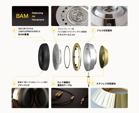 ドライバーには、50mmφダイナミック型ドライバーユニットを搭載し、その筐体にはアルミ切削品を使用している。ドライバーユニットの振幅による共振やたわみを抑え、にじみの少ない、明瞭な音を実現したとしている。また振動板には広い帯域に渡り、バランスの良い音を出すチタンを採用した。感度は105dB、インピーダンスは16Ω。