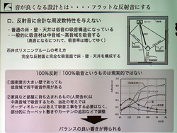 鈴木氏はまず、直接音と間接音との関係性に言及。オーディオではスピーカーから出る直接音だけでなく、壁や天井、床などに反射した間接音も含めて聴いているのであり、一般的なリスニングルームでは、直接音より間接音のエネルギーのほうが大きいとコメント。「音が悪くなる原因は間接音が作っている」と、反射音に大きく関与する部屋そのものに気を使うべきだと説明する。