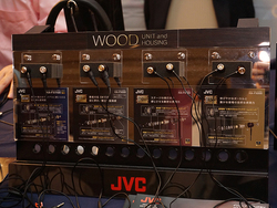 JVCケンウッドは、JVCブランド初のハイレゾ対応ヘッドホン「SIGNA」と、「HA-FX1100」をはじめとするウッドドームイヤホンを中心に展示。もちろんSIGNAは「SIGNA 01」と「SIGNA 02」の両機を試せるようになっている。