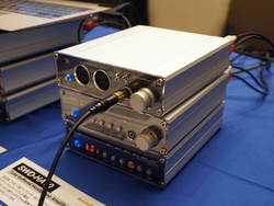 アナログポータブルヘッドホンアンプ「P5」も音展同様に参考出展。出力は660mW+660mW(32Ω/バッテリー使用時)。16Hz〜80kHz、-0.2dBの広範囲でフラットな周波数特性を実現したとし、オペアンプとバッファーを自分で交換することもできる。