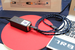 オーロラサウンドはUSBバスパワー機器用の外部安定化電源「BusPower-Pro2」「BusPower-Pro」向けの専用USBケーブル「USB-NPL」を出展。同製品はPCの発するノイズ成分を遮断するために、USB2.0の規格から電源ラインの結線をなくしたUSBケーブルとなる。