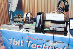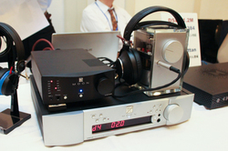 TRIODEは年末発売予定の真空管アンプ「TRV-35SER」のヘッドホン出力をデモ。Nmodeは“1bit ヘッドホンアンプ”「X-HA1」など同社製品を一斉展示。メースはMytek Digitalの「Manhattan DAC」ブラックモデルや、ENIGMAの静電型/ダイナミック型ハイブリッドヘッドホン「Dharma D1000」を展示。