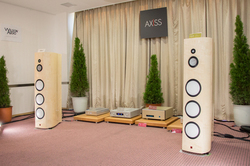 アクシスは、ルーメンホワイトの復活第1号モデル「white light anniversary」をメインスピーカーに据えてデモを展開。本機は、リアポートローディングやエアーダンピング・テクノロジーなどの独自技術が投入された代表的スピーカー「white light」をベースに、5年のブランド休眠の間に蓄積された研究成果が投入された創立15周年記念モデルだ。