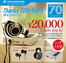 ゼンハイザーは、創立70周年を記念した「Thanks 70th Yearsキャンペーン」を11月20日からスタートした。期間は2016年1月11日まで。