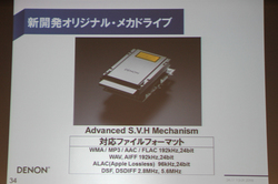 ドライブメカは、デノンが自社開発した「Advanced S.V.H. Mechanism」を搭載する。これはDCD-SX11に搭載されたものとまったく同一。DCD-SX11の開発時に新たに設計され、ピックアップ制御やデコードを担う回路が新たに開発された。また回路を最短・最小化させ、余計なノイズや電流を発生させない設計としている。