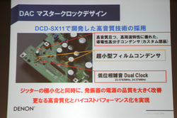 発表会では本機の開発を手がけた出口氏がプレゼンテーションを実施。出口氏はフラグシップSACDプレーヤー「DCD-SX1」(開発者インタビュー)、および昨年10月に発売された「DCD-SX11」(開発者インタビュー)の開発も手がけた人物だ。