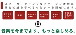 具体的な内容は、「音の出るしくみ」や「配線」、「オーディオの種類」といった普段はなかなか問い合わせにくい基本から始まり、専門家が教える良い音を手に入れるコツまでの解説を予定。いつもの音楽をより楽しくするための方法を体験できるイベントとなる見込みだ。