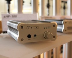sHP-100は、最大192kHz/24bitのPCMおよび最大5.6MHzまでのDSDに対応。USB-DAC部はPCM再生音を向上させるべく、ノイズ対策や電源回路、シャーシ、デジタル入力からD/A変換回路各段での対策を施し、低ノイズかつストレートな音再生を特徴とするとのこと。プリアンプおよびヘットホンアンプも搭載している。