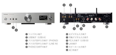 アンプ部の出力は50W+50W(1kHz、T.H.D. 0.5%、8Ω、20kHz LPF、JEITA)、100W+100W(1kHz、T.H.D. 0.5%、4Ω、20kHz LPF、JEITA)。推奨負荷インピーダンスは4Ω-16Ωとなっている。さらに、前面にはヘッドホン出力端子も備える。