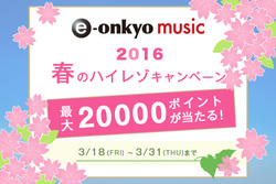 e-onkyo musicは、3月18日から「春のハイレゾもっと聴こうキャンペーン」を実施している。期間は3月31日(木)23:59まで。