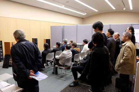 来場者は入場してすぐは興味のあるブランドの展示を観覧していたが、音楽が流れているブースに自然と足を運び、そこでの試聴が終わるとまた別のブースで試聴が始まるので、最終的には全てのブースを周ることになった。