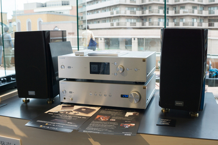 ソニーは、シャトー広場とザ・ガーデンルームの2ヶ所にブースを展開。4月16日発売のDSDアーカイブ対応のアナログプレーヤー「PS-HX500」や「h.ear」シリーズのヘッドホン「“h.ear on” MDR-100A」などの同社最新製品を出展した。