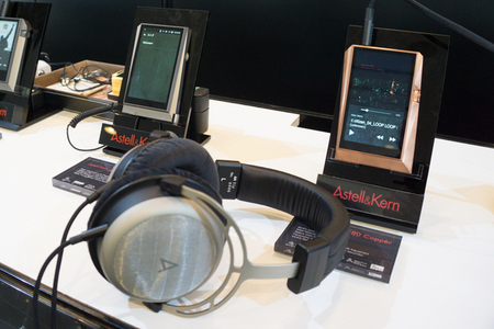 アユートはAstell&Kern、およびハイレゾ配信サイト「groovers」のブースを出展。Astell&Kernからは「AK380 Copper」をはじめとする最新のハイレゾポータブルプレーヤー、「AK T1p」などのヘッドホンが登場。これらを用いてgrooversのハイレゾ音源を試聴することができた。