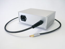 部材には新たに、SiCダイオードや薄膜高分子積層コンデンサー、ファインメットビーズを採用。電源入力部にSCHURTER社のIECインレット、DC出力ケーブルにスリーブ仕上げのモガミ電線社のOFCシールドタイプケーブルと高品位なコネクターを用いることで、従来モデルを踏襲しつつも高いコストパフォーマンスを実現したという。