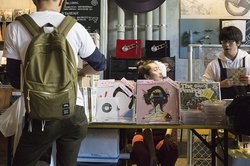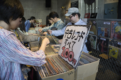 HMVによるアナログレコード販売スペースでは、激レア盤が1,000枚用意され、1枚100円という特価で販売されていた。終了間際には3枚100円という更なる超特価に。多くの来場者が、棚を熱心にディグっていた。