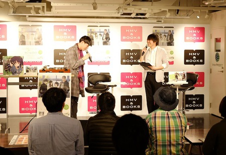 渋谷MODIの7F、HMV&BOOKS TOKYOのイベントスペース周りは、『ここさけ』一色。ディスプレイにはPV映像が流され、サウンドトラックが微かに聴こえてくる。基本的に立ち見もOKのイベントだったが、HMV & BOOKS TOKYOにて『ここさけ』Blu-ray/DVDの全形態より1品目を購入することで、イベントの参加券が渡され、ミト氏にサインをしてもらう権利が得られる。特典レコードのジャケットに書いてもらうこともできるとのことで、当日その場で購入して参加券をゲットした方もいた。