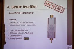 さらにはサプライズとして、S/PDIF信号の高精度伝送を可能とする新アクセサリー「SPDIF iPurifier」を世界初公開した。