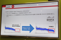サンプリング周波数に応じて高音域の倍音成分を生成、MP3やAACなどでは圧縮時に失われた音源情報を復元できる「DHFX」機能も搭載する。