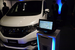注目は、9月発売になる「マルチドライブアシストユニット(MAユニット)」だ。「サイバーナビ」と連携して高度な画像認識技術によって先進の安全支援機能を行う。本機は、フロントカメラと独自の画像認識技術により前方車両までの到達時間を推定し、車間距離が十分でない時などに音と画面表示で警告する。また走行時の「前方車両接近警告」や停車時の「誤発進警告」に加え、「サイバーナビ」に収録されている急ブレーキが多い「ヒヤリハット地点」データと連動し、停車した右折交差点で前方車両に続いて発進する際に注意喚起を行う。さらには車の異常を知らせる「ライブカーセキュリティ」など、ドライブ中から駐車中までカーライフ全般をサポートする。