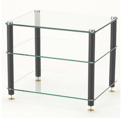 本シリーズでは、合わせガラスによる特殊な防弾ガラスの製法を用いて開発された、剛性の強いガラス棚板を採用。その剛性の高さは、1kgの鉄球を1mの高さから落としても割れないほどだとのこと。これにより、ガラス特有の共振周波数を排除することが可能となり、より透明度の高い音質を実現するとしている。