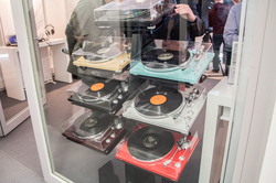 最新のベルトドライブ式アナログプレーヤー「TN-570」も披露。ウィンドウに展示されていた「TN-350」のカラーバリエーションには、多くの来場者が足を止めていた。