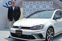 発表のため登壇した、VGJ社に着任したばかりの代表取締役社長ティル・シェア氏が「最強のゴルフ」と発言した本モデルは限定400台の販売で、ピュアホワイト× ブラックルーフと、カーボンスチールグレーメタリック×ブラックルーフの2色展開。価格は4,699,000円(税込)。走りを楽しむための熱い特別限定車に注目が集まっていた。